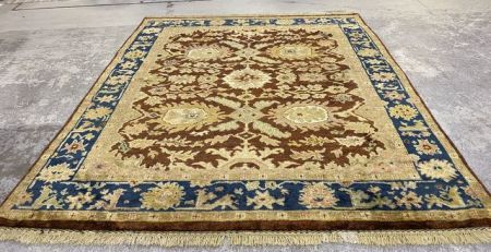 Hand Woven Wool 8'2 x 10'8, hand woven, good condition, blue, brown. Hand Woven Wool 8'2 x 10'8, hand woven, good condition, blue, brown.