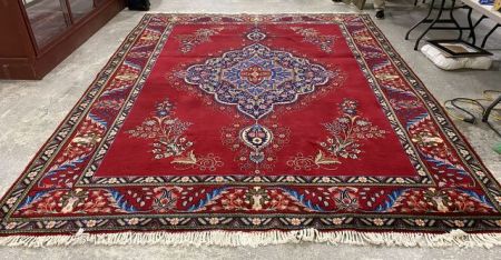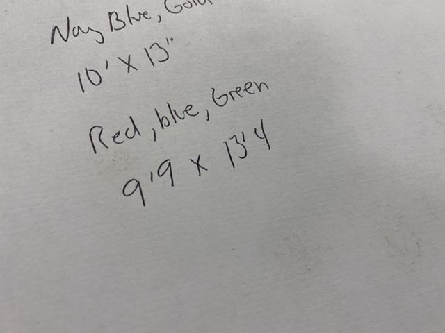 Hand Woven Wool 9'9 x 13'4, red, blue, green, good condition. Hand Woven Wool 9'9 x 13'4, red, blue, green, good condition.
