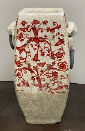 Decorative Pottery Vase, terra cotta style, handled, floral painted, 12"h. Decorative Pottery Vase, terra cotta style, handled, floral painted, 12"h.