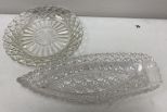 604 Vintage Boat Shaped Celery Dish and Pressed Glass Plate