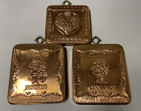 Three Brass Wall Decor, Nutmeg, Cinnamon, 9"h., 8"w. Three Brass Wall Decor, Nutmeg, Cinnamon, 9"h., 8"w.