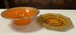 Vintage Orange Gild Gilt Rimmed Bowl and Underplate, 10"dia. Vintage Orange Gild Gilt Rimmed Bowl and Underplate, 10"dia.