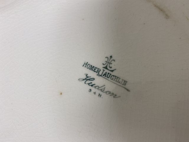 Porcelain Platters, and Bowls, brands: Homer Laughlin Hudson, Germany, Crown Potteries, Haynes. largest is 16" Porcelain Platters, and Bowls, brands: Homer Laughlin Hudson, Germany, Crown Potteries, Haynes. largest is 16"