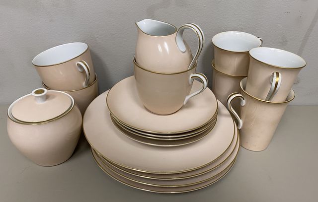 Noritake Japan China Set, 4 dinner plates, 4 saucers, sugar, creamer, five cups. Noritake Japan China Set, 4 dinner plates, 4 saucers, sugar, creamer, five cups.