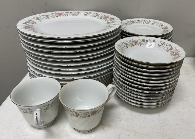 Sheffield Bouquet China Set, 14 dinner plates, 14 berry bowls, 14 saucers, 2 cups. Sheffield Bouquet China Set, 14 dinner plates, 14 berry bowls, 14 saucers, 2 cups.