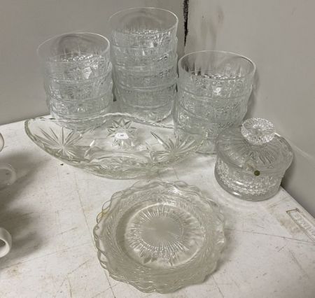 Hobster Banana Dish 9"w, 12 Glass Bowls 4"dia., Plate, and Mustard Hobster Banana Dish 9"w, 12 Glass Bowls 4"dia., Plate, and Mustard