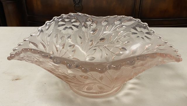 Floral Glass crimped Centerpiece Bowl, 4"h., 12"w. Floral Glass crimped Centerpiece Bowl, 4"h., 12"w.