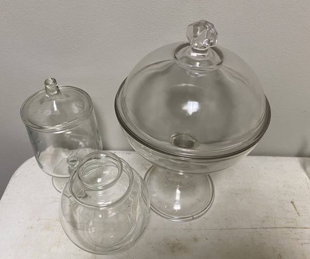 Glass Covered Candy Compote 10"h., Two Glass Jars Glass Covered Candy Compote 10"h., Two Glass Jars