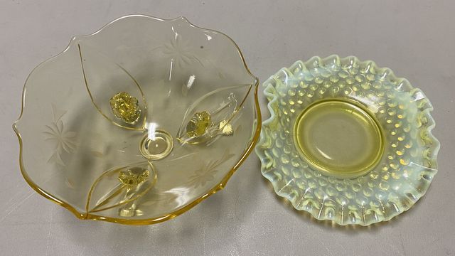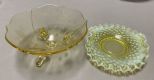 756 Yellow Glass Footed Bowl and Fenton Crimped Rim Plate
