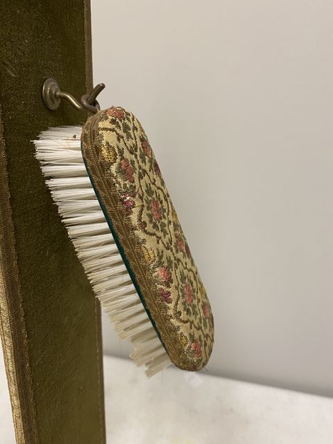Felt wall brush rack, one brush., 24"h. Felt wall brush rack, one brush., 24"h.
