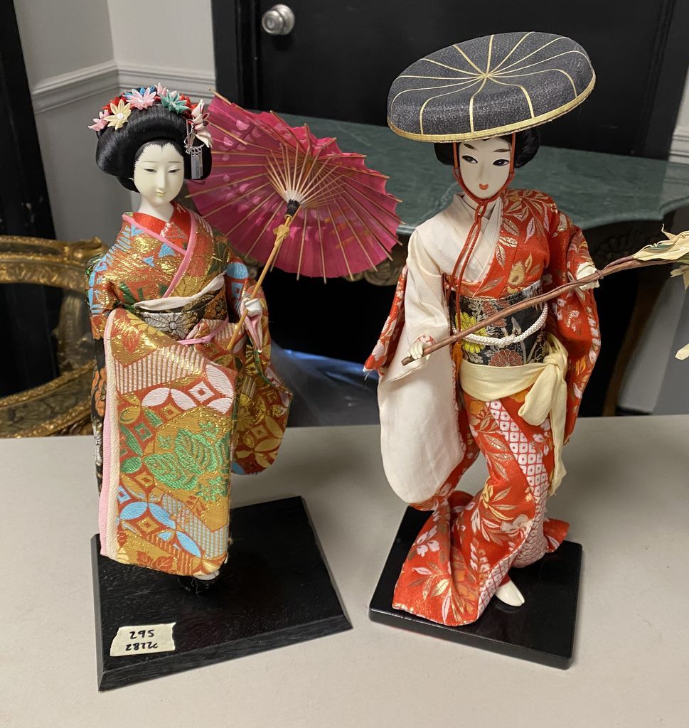 Pair of Asian Figurines, hand crafted clothing, 16"h., Location Right Hubby Pair of Asian Figurines, hand crafted clothing, 16"h., Location Right Hubby