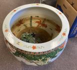 Large Asian Porcelain Fish Bowl, hand painted, used, 18"h., 21"w. Location Front Large Asian Porcelain Fish Bowl, hand painted, used, 18"h., 21"w. Location Front