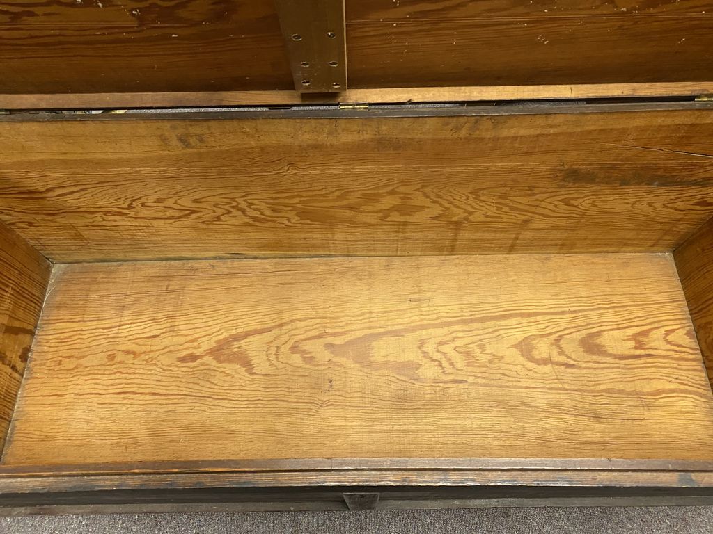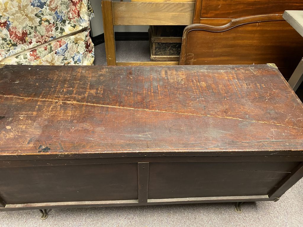 Wood Storage Trunk, metal footed, lift top, can be used as coffee table, location right conference room Wood Storage Trunk, metal footed, lift top, can be used as coffee table, location right conference room