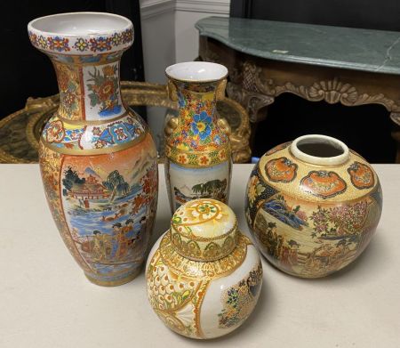 Vintage Chinese Porcelain Vases, hand painted, tallest is 10"h. Location Right Cubby Vintage Chinese Porcelain Vases, hand painted, tallest is 10"h. Location Right Cubby