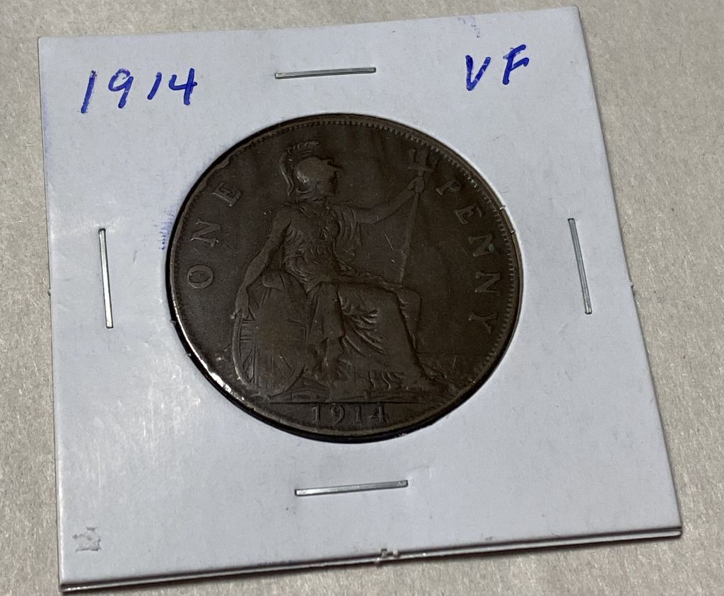 1914 British Large Penny King George V, extra fine, paper case, Location Case by Office 1914 British Large Penny King George V, extra fine, paper case, Location Case by Office