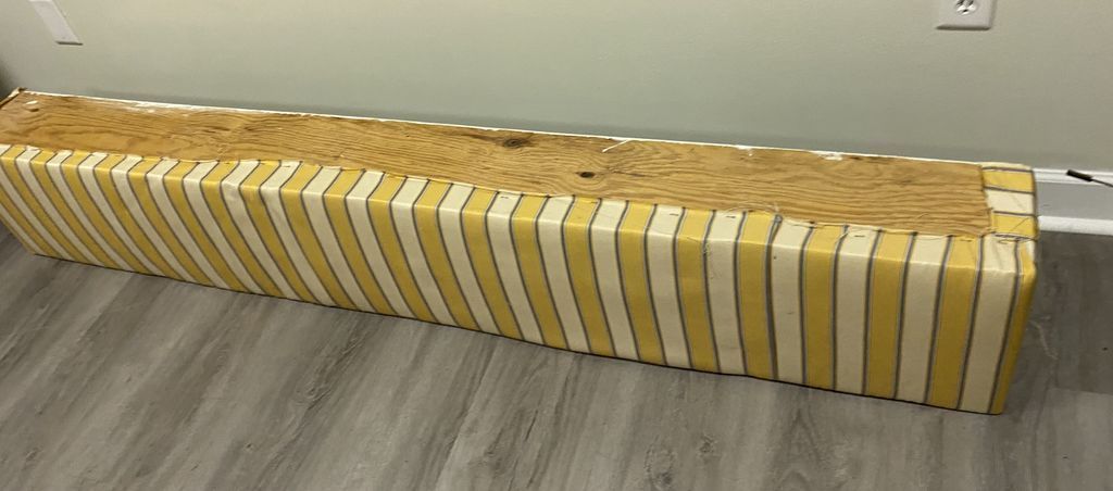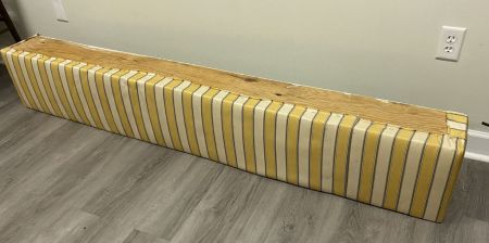 Striped Upholstery Window Valance, wood frame. Location Left Conference Room Striped Upholstery Window Valance, wood frame. Location Left Conference Room