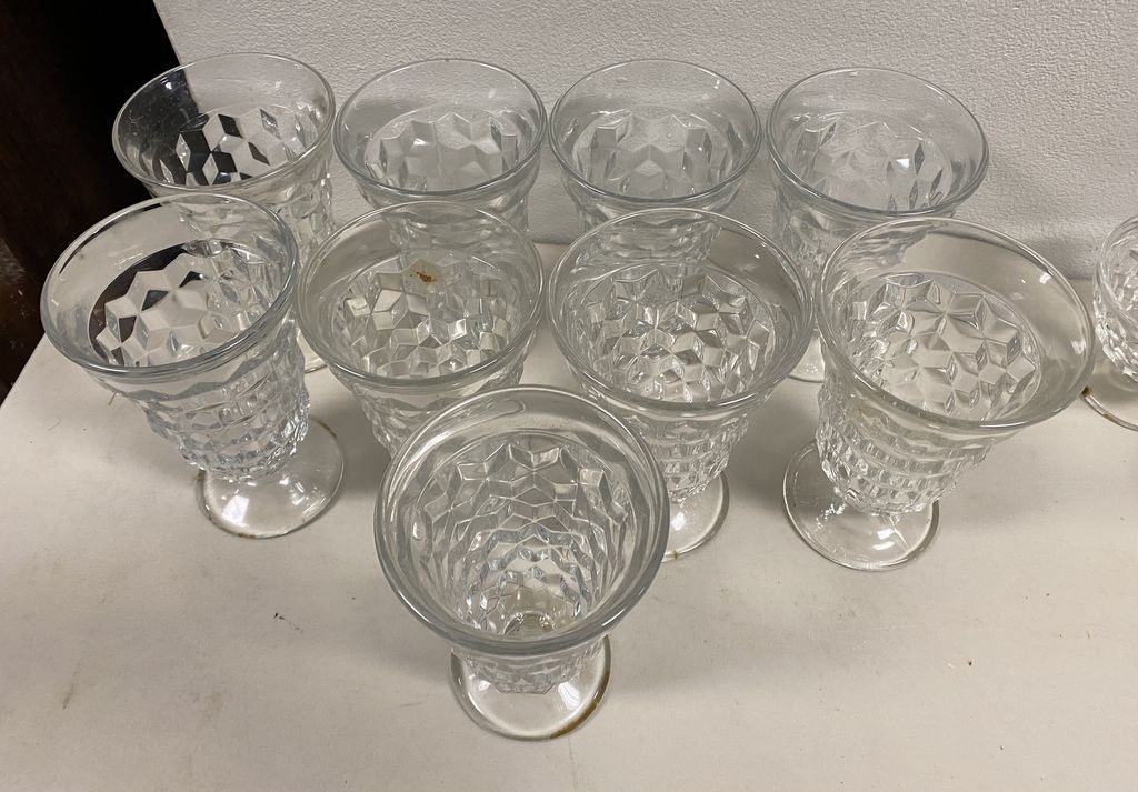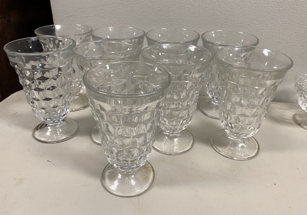 9 Fostoria "American Clear" 6"h Iced Tea Glasses, Location Back right office 9 Fostoria "American Clear" 6"h Iced Tea Glasses, Location Back right office