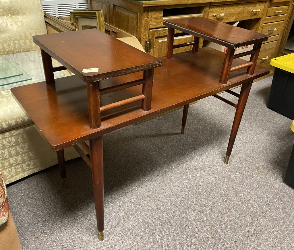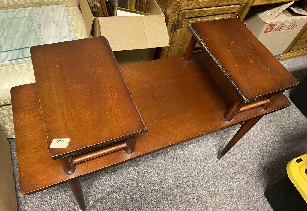 Mid Century Style Accent Table, has scratches on finish, 28"h., 42"w. Mid Century Style Accent Table, has scratches on finish, 28"h., 42"w.