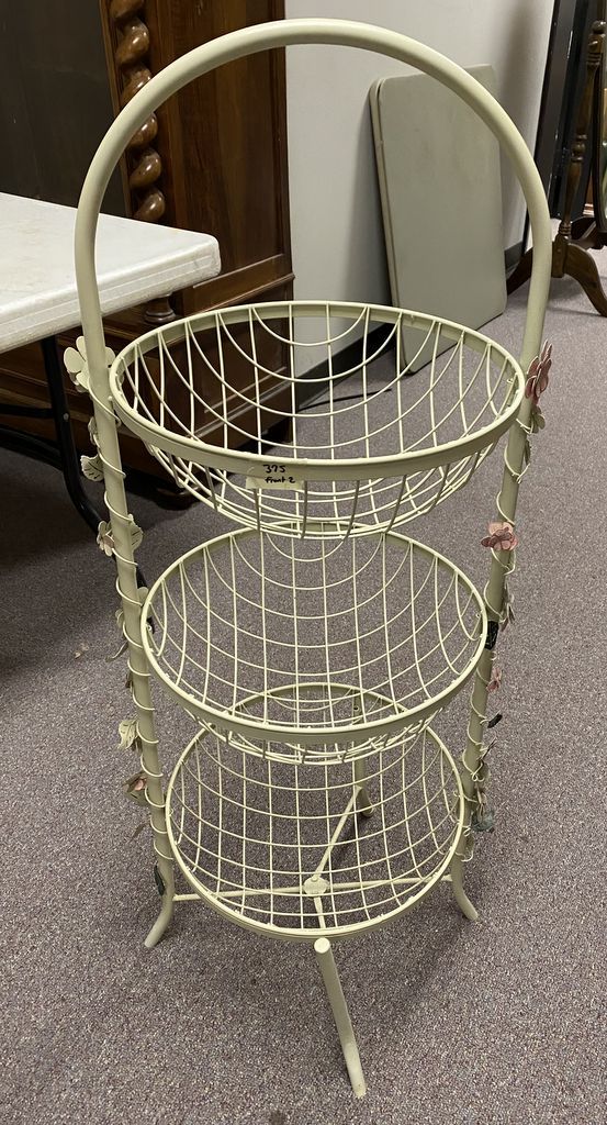 White Three Basket Flower Stand, removeable, wired, 40"h. Location Left Conference Room White Three Basket Flower Stand, removeable, wired, 40"h. Location Left Conference Room