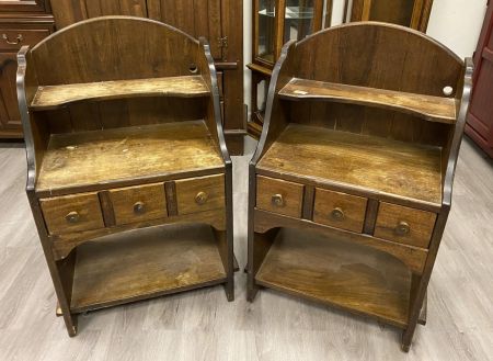 Late 20th Century Oak Side Tables, drawers, has worn top, 40"h., 24"w, Location Left Conference Room Late 20th Century Oak Side Tables, drawers, has worn top, 40"h., 24"w, Location Left Conference Room