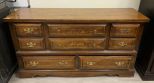 Late 20th Century Dresser, oak speckled finish, 8 drawers, 32"h., 60"w., 18"d, Location Left Conference Room Late 20th Century Dresser, oak speckled finish, 8 drawers, 32"h., 60"w., 18"d, Location Left Conference Room