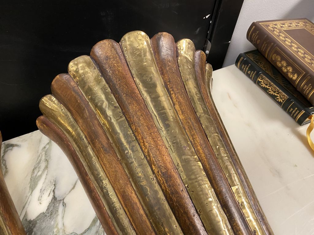 Pair of Wood and Copper Wall Sconces, 25"h. Pair of Wood and Copper Wall Sconces, 25"h.