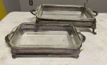 Silver Plate Casserole Dishes, glass inset, has tarnish. Location Back Office Silver Plate Casserole Dishes, glass inset, has tarnish. Location Back Office