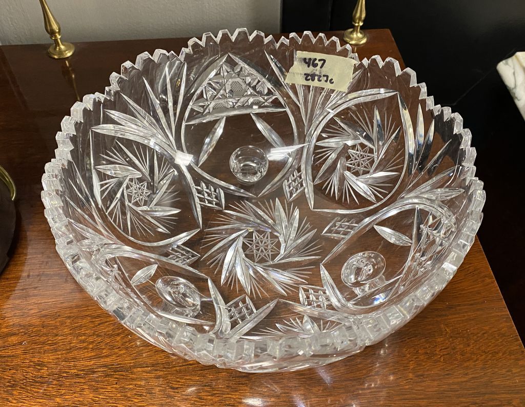 Etched Glass Footed Fruit Bowl, 4"h., 9 1/2"dia. Etched Glass Footed Fruit Bowl, 4"h., 9 1/2"dia.