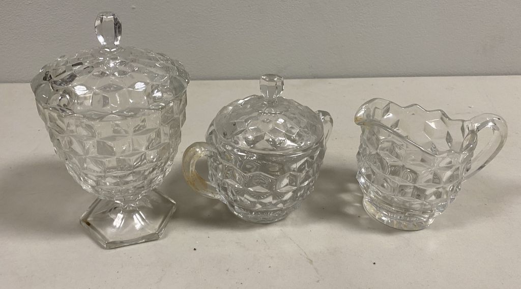 3 Fostoria "American Clear" Glassware, Location Back Right Office 3 Fostoria "American Clear" Glassware, Location Back Right Office