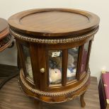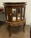 Reproduction Round Curio Table, beveled glass sides, 30"h. 20"w. Location Left Conference Room Reproduction Round Curio Table, beveled glass sides, 30"h. 20"w. Location Left Conference Room
