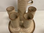 Stoneware Pitcher Set, Pitcher, 4 cups, and undertray. Location Back Left Office. Stoneware Pitcher Set, Pitcher, 4 cups, and undertray. Location Back Left Office.