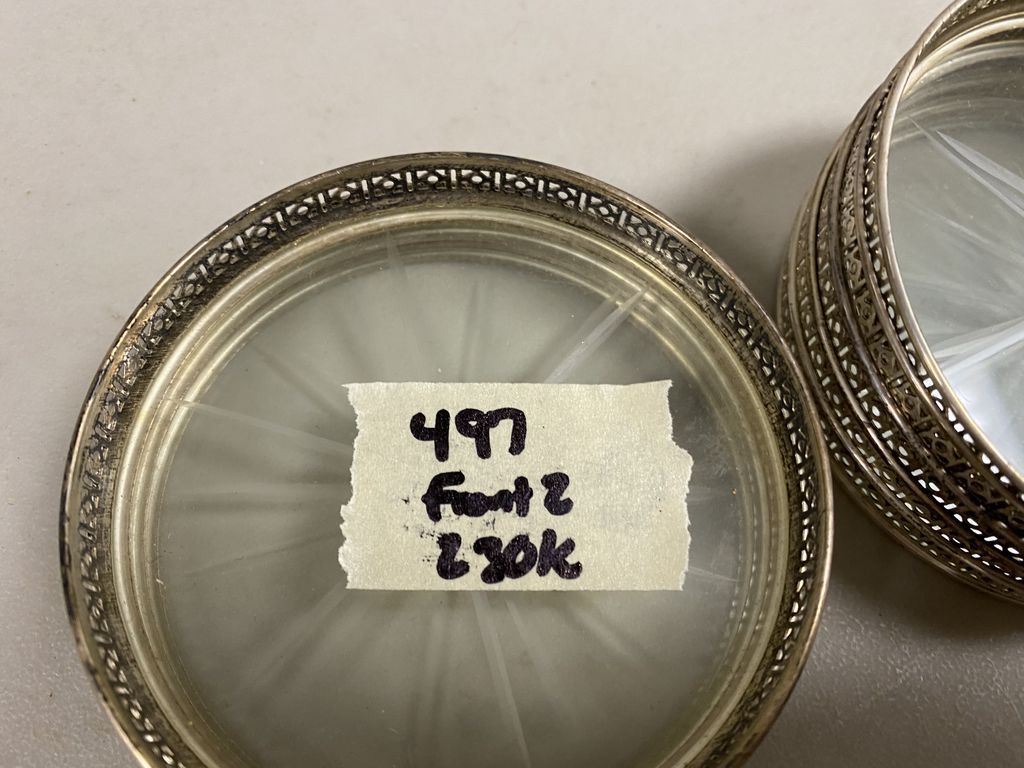 497 8 Sterling Rimmed Glass Coasters