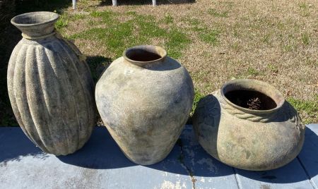Three Terra Cotta Plant Vases and Planters, rustic style. Three Terra Cotta Plant Vases and Planters, rustic style.
