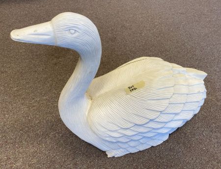 Large Wood Painted White Swan, does have crack on top, 22"w. Location Right Side Large Wood Painted White Swan, does have crack on top, 22"w. Location Right Side