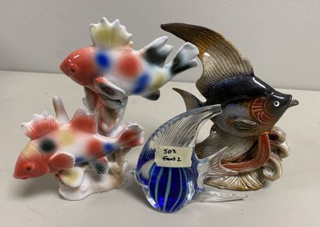 Pottery Fish, Pottery fish decor, and glass fish. Location Back Left Office Pottery Fish, Pottery fish decor, and glass fish. Location Back Left Office