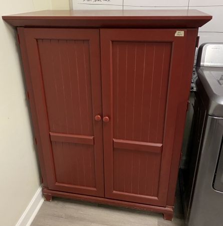 Modern Red Painted Entertainment Cabinet, double door, for tv, 54"h., 41"w. Location Left Conference Room Modern Red Painted Entertainment Cabinet, double door, for tv, 54"h., 41"w. Location Left Conference Room