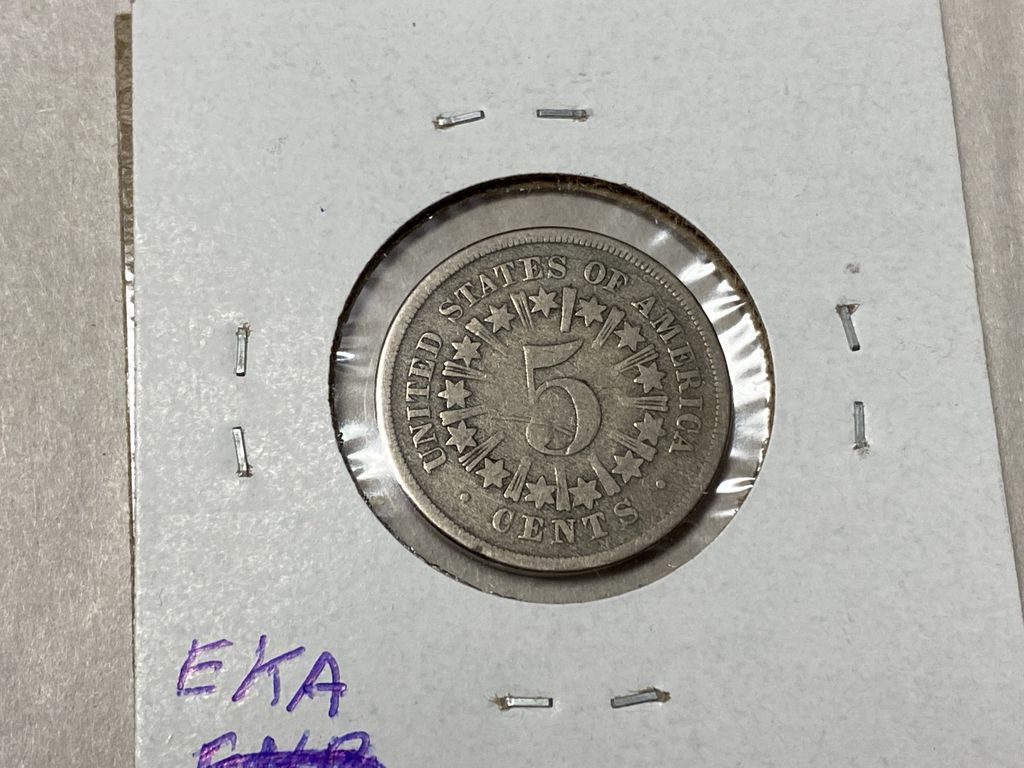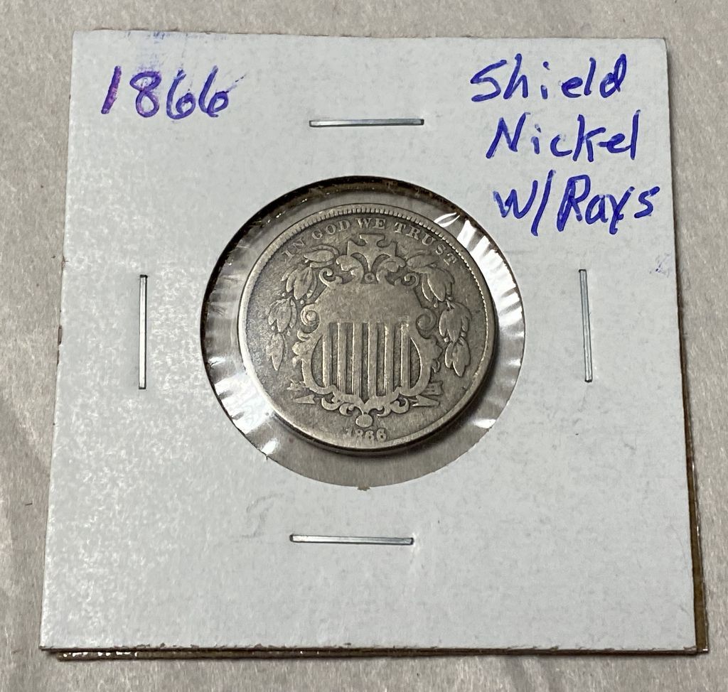 1866 Shield Nickel with Rays, paper case, Location Case by Office 1866 Shield Nickel with Rays, paper case, Location Case by Office
