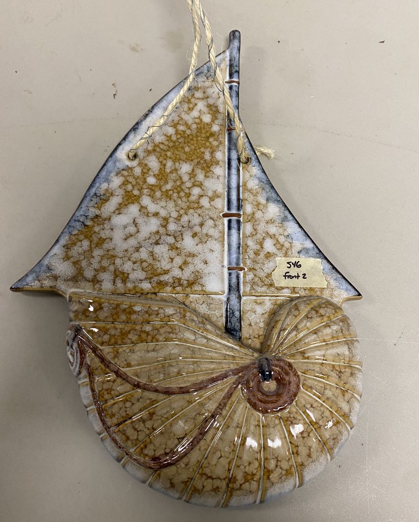 Pottery Shell Wall Plaque, glazed, 16"h. Location Back Left Office. Pottery Shell Wall Plaque, glazed, 16"h. Location Back Left Office.