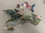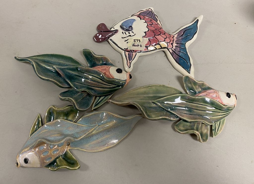 Four Pottery Wall Fish Plaques, hand painted. Location Back Left Office Four Pottery Wall Fish Plaques, hand painted. Location Back Left Office