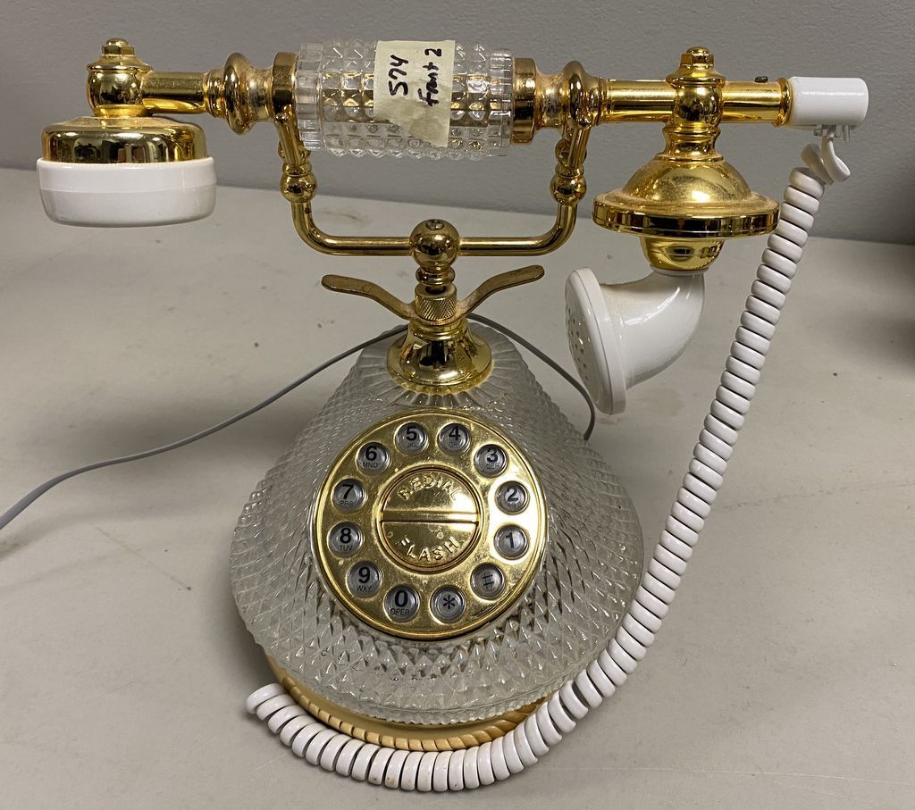 Pressed Glass Rotary Phone, brass trim, Location Back Left Office Pressed Glass Rotary Phone, brass trim, Location Back Left Office