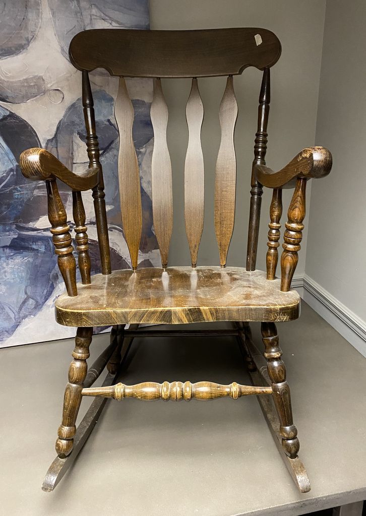 Cherry Colonial Style Rocker, has wear, needs cleaning, Location Right Conference Room Cherry Colonial Style Rocker, has wear, needs cleaning, Location Right Conference Room
