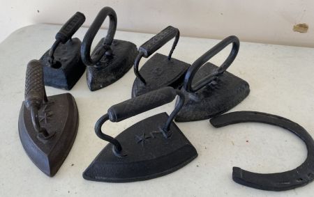 6 Old Press Irons, #6 and #7, good condition. Location Back Right office 6 Old Press Irons, #6 and #7, good condition. Location Back Right office