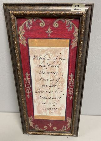 Framed Quote Print, 23"h., 10"w. Location Back Left Office Framed Quote Print, 23"h., 10"w. Location Back Left Office