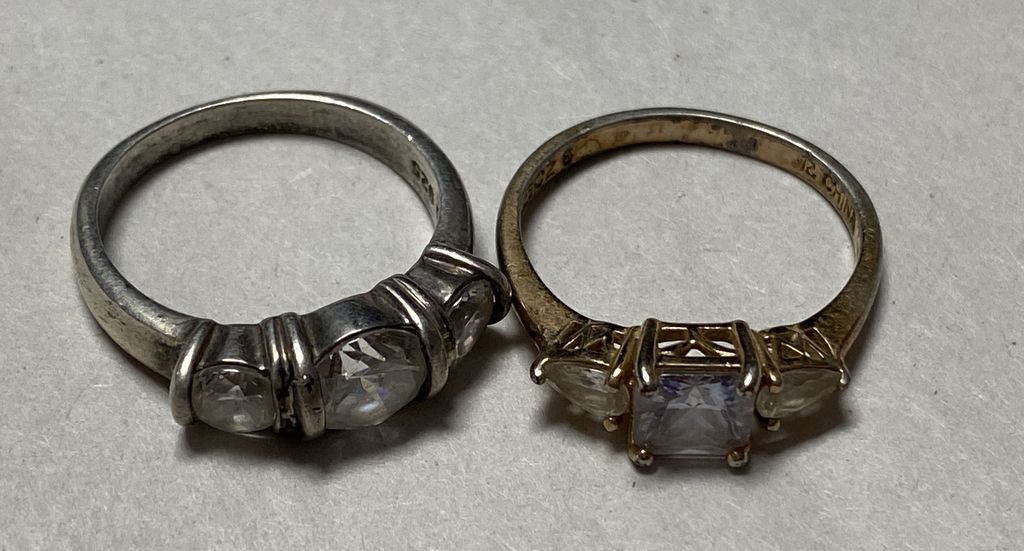 Two Sterling Silver Ladies Rings, 3 stones, Location Case by Office Two Sterling Silver Ladies Rings, 3 stones, Location Case by Office