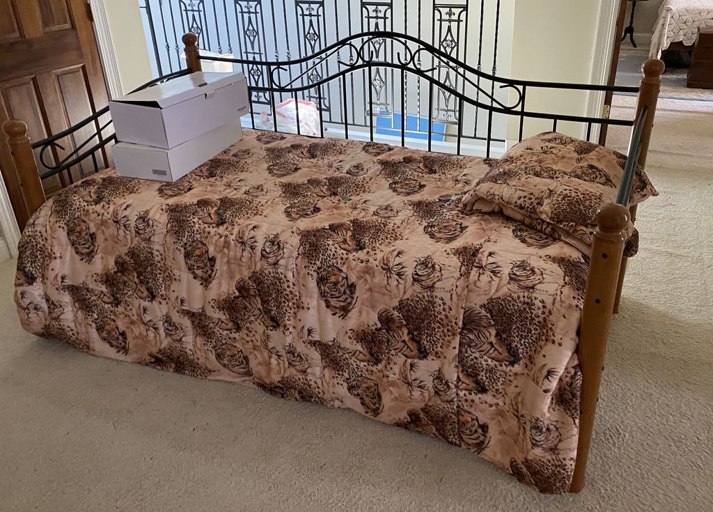 Pair of Wood Metal Day Beds, includes mattress, has bolts and parts. bed spreads sold separately, good shape. Location Back Room Pair of Wood Metal Day Beds, includes mattress, has bolts and parts. bed spreads sold separately, good shape. Location Back Room