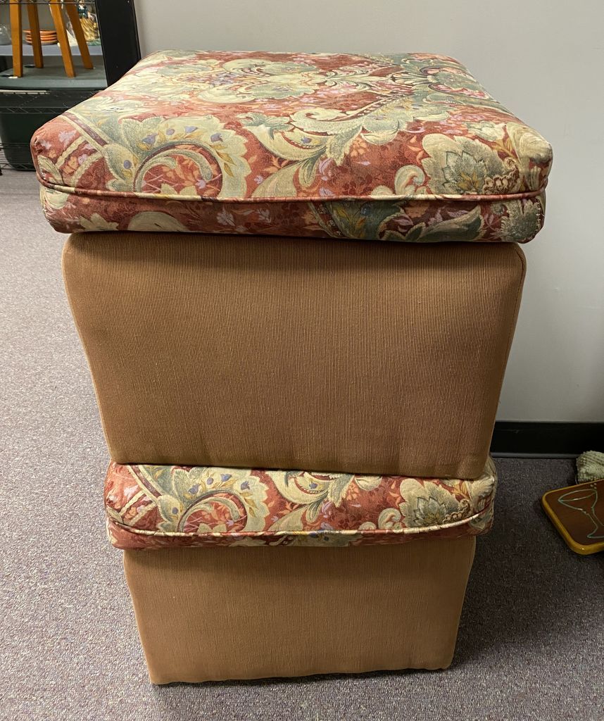 Pair of Matching Ottoman, floral upholstery cushions, 17"h. 20"w. Pair of Matching Ottoman, floral upholstery cushions, 17"h. 20"w.