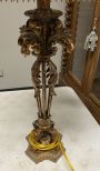 Modern Gold Gilt Metal Table Lamp, with shade, 34"h. Location Left Conference Room Modern Gold Gilt Metal Table Lamp, with shade, 34"h. Location Left Conference Room