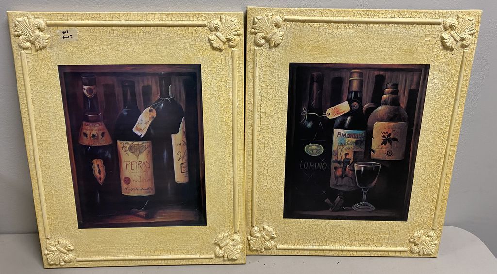 Pair of Giclee Canvas, Wine imagery, unframed, 23"h., 18"w. Location Left Back Office Pair of Giclee Canvas, Wine imagery, unframed, 23"h., 18"w. Location Left Back Office
