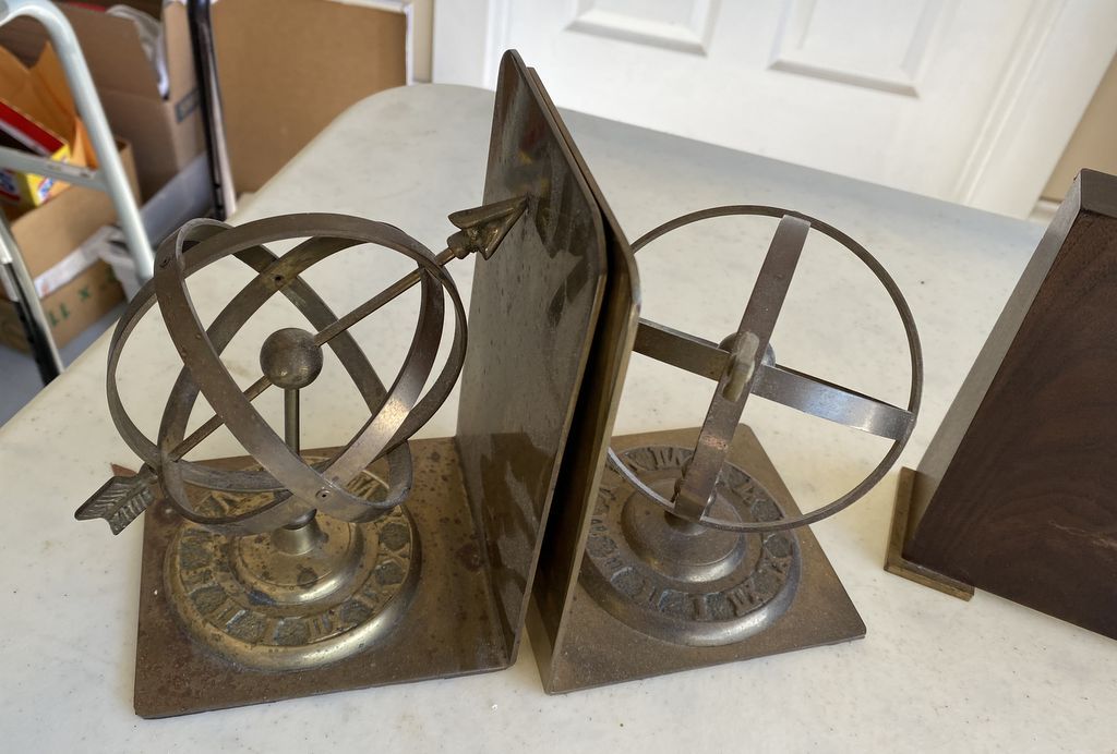Two Pair of Bookends, Sphere and Block style. Location Back right office Two Pair of Bookends, Sphere and Block style. Location Back right office