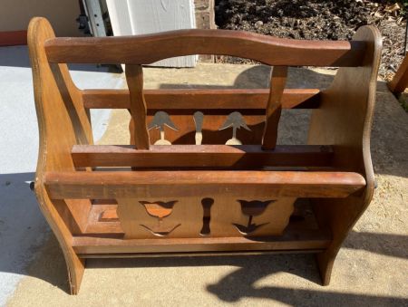 Late 20th Century Magazine Rack, flower design. Location Left Office Late 20th Century Magazine Rack, flower design. Location Left Office
